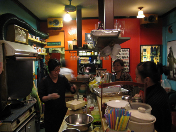 店小小的~ 位子不多,去前最好訂位~這張是老闆在傳授甜點的做法~~