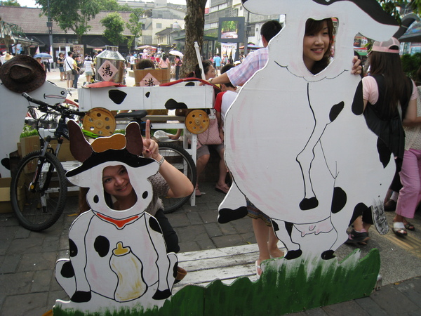 人真的很多,還沒擠到集集車站前,先來和賣冰的立牌照一下