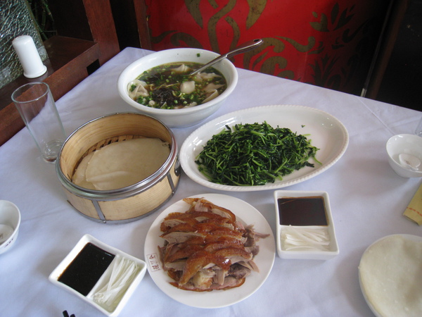 點了烤鴨,湯餃,炒豆苗,二個人吃這一桌,居然飽到不行 ^^