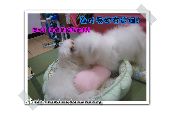 miluku 也喜歡枕頭~~~ 上不了床~就直接拿走一個