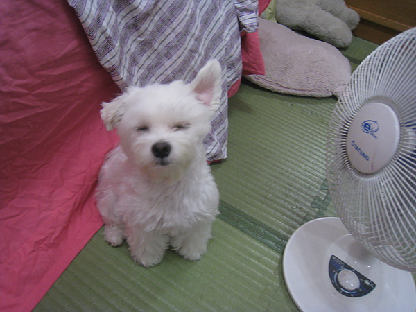 熱死人了... 電風扇都給你佔去 還吹到一邊耳朵飛起來~~