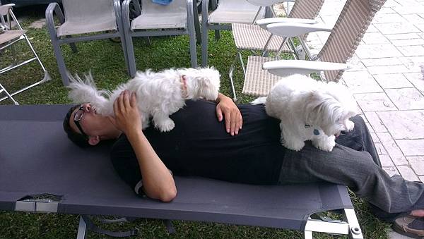 舒服啊!~~~ 旺爸都倒下企 (聽說是要試試看承載量)