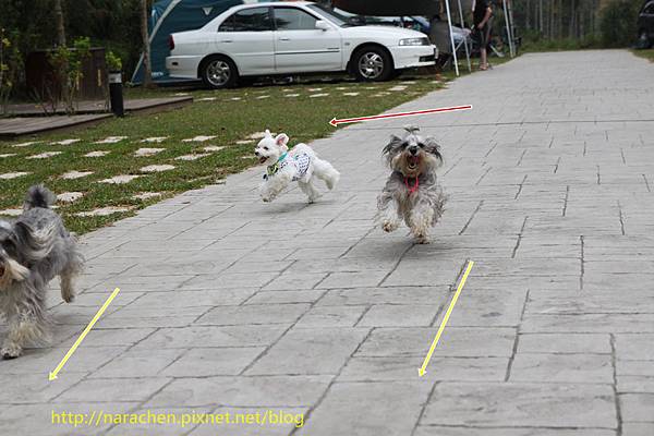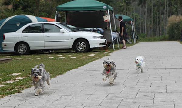四犬每次露營就大解放~ 自己衝來衝去~~